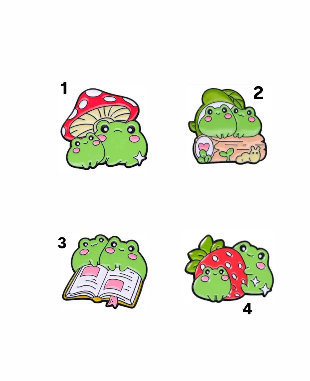 Pines de sapitos en diferentes estilos: con honguito 🍄, fresa 🍓 o libres 🌿.Perfectos para compartir en pareja, con tu mejor amigo o simplemente para darle un toque adorable a tu mochila o chaqueta.