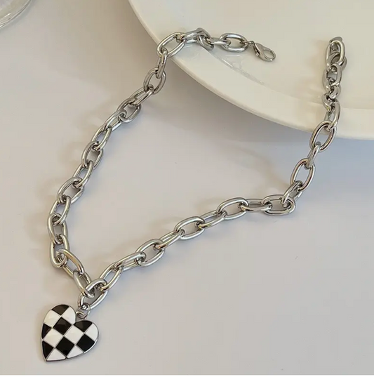 Collar de corazón blanco y negro