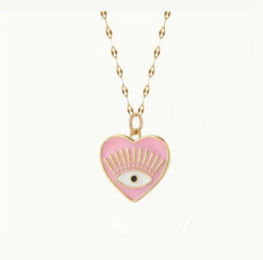 Collar con dije rosado de corazón con ojito